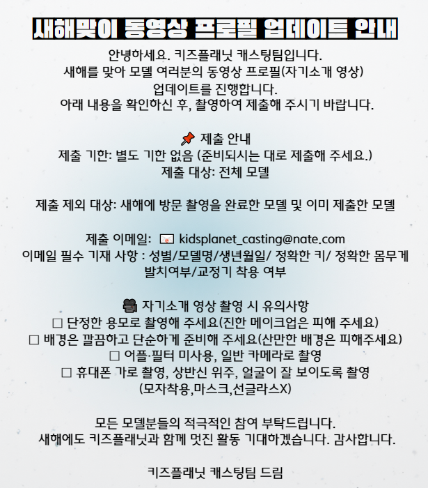 N 손세정제 홍보영상 촬영모델 섭외합니다. | 2026.02.10 |